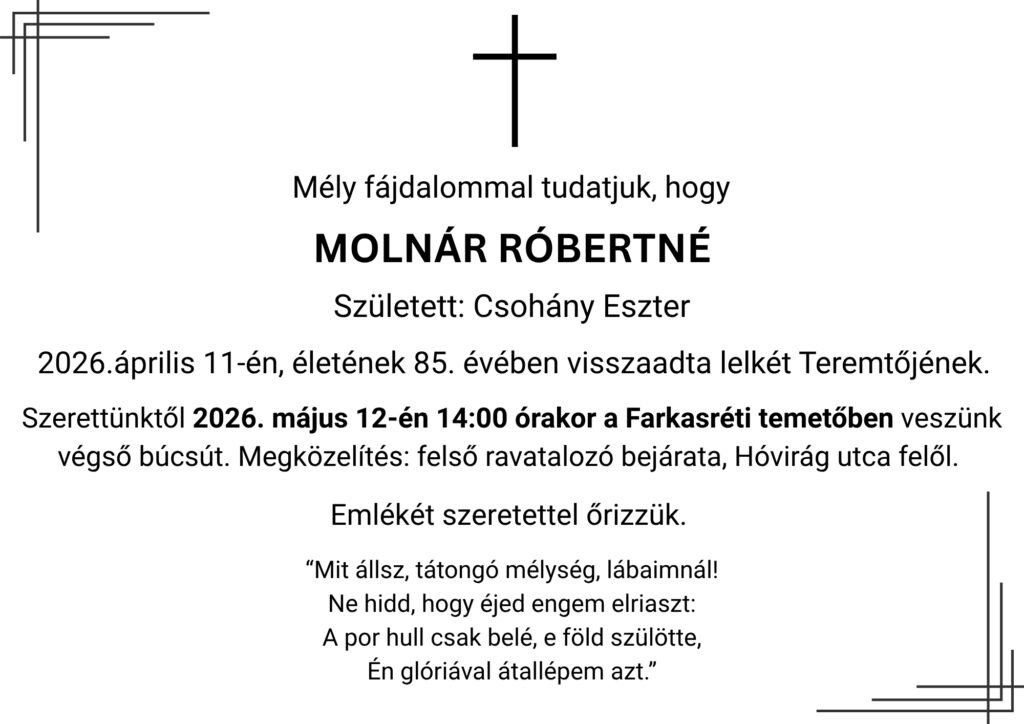 Eszter végül csendben, unokája kezét fogva április 11.-re virradóra hunyt el.